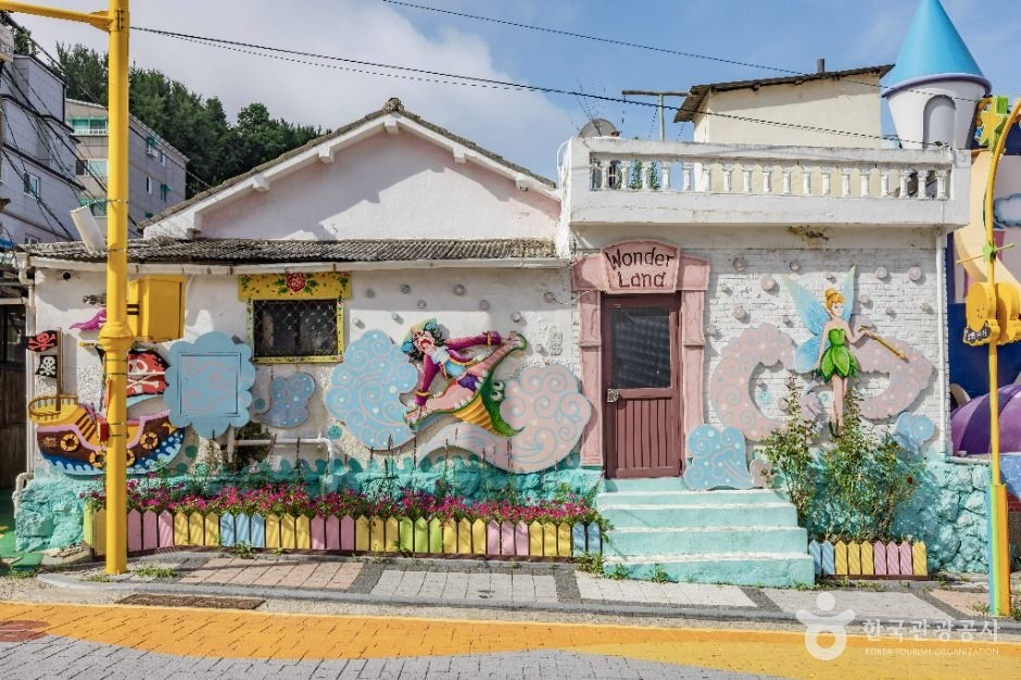 담벼락 가스계량기가 “오즈의 마법사” 양철나무꾼처럼 꾸며져 있고, 전봇대 하나는 “잭과 콩나무”를 연상시키는 조형물로 변신해 있었습니다. 이처럼 마을 곳곳이 ‘보는 즐거움’과 ‘걷는 즐거움’을 동시에 선사합니다.