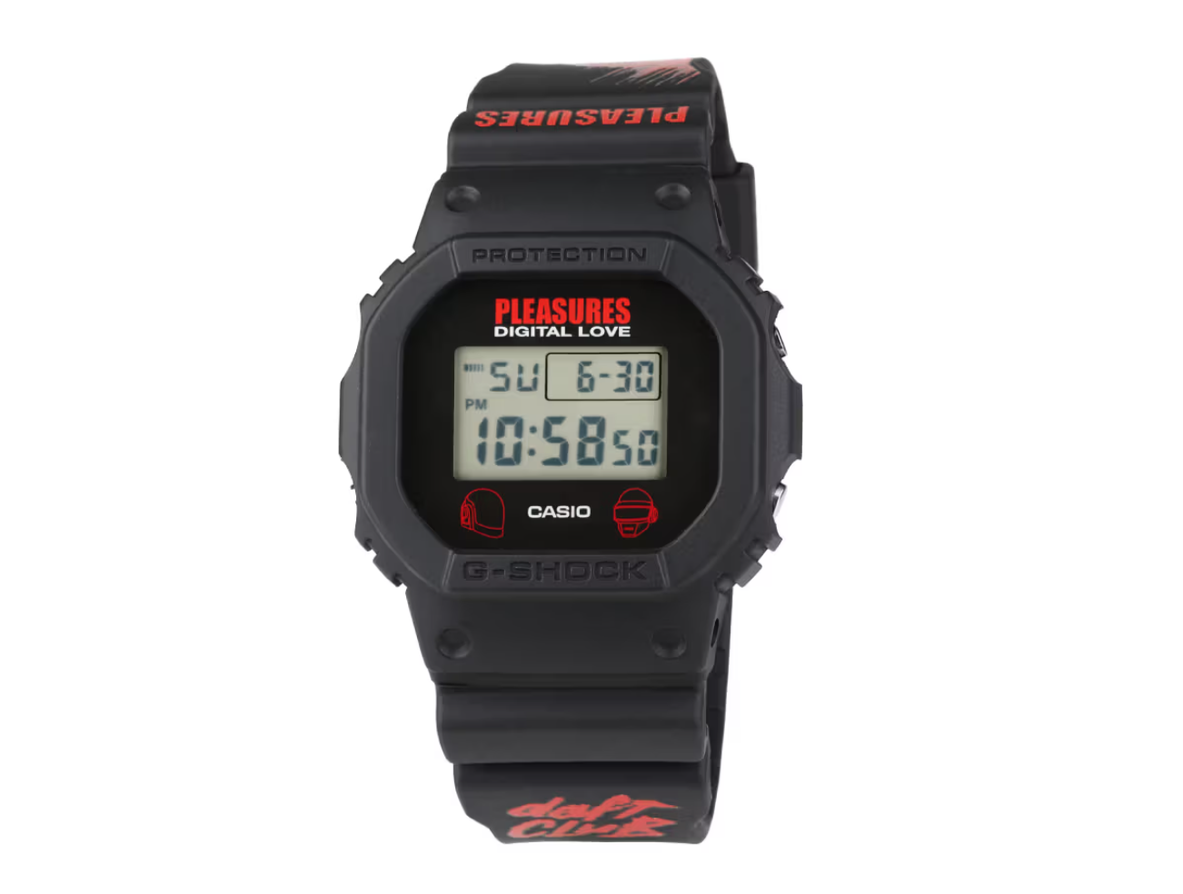 LA 스트리트 브랜드 PLEASURES, 하드코어 내구성의 상징 G-SHOCK, 그리고 로봇 듀오 다프트 펑크가 한 프레임 안에서 만난 한정판 DW5600PDP-1.